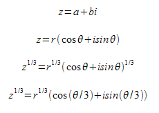 - 後ろのほうは、ド・モアブルの定理で、 cos(θ/3) + i sin(θ/3) にする