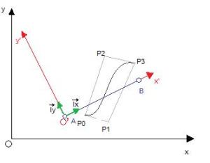 次に、ベジエ曲線の点を、ローカル座標に直す