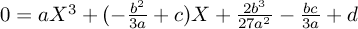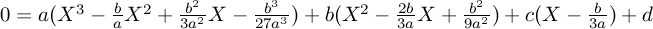 C#で数学 3次方程式を解く 「解の公式は4次まである」などという言葉を聞いていたので 簡単に計算出来そうだと思っていたが、結構面倒だった。 元の式を として 上のように変換し、展開し、a で割る。 結果、 の形式になる。 これを使ってu, v を作る。 u, v は値が3つずつある。 その中から、u * v = -p となる u + v を選ぶ。それがX。 とりあえず絶対値の差が0に近いものを選んだ。 共有: クリックして X で共有 (新しいウィンドウで開きます) X Facebook で共有するにはクリックしてください (新しいウィンドウで開きます) Facebook いいね 読み込み中… 関連