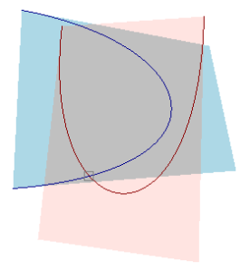 - 曲線が凸包内である区間を調べるときは、いったん t < 0, 1 < t の領域も含めた解をを得てから、マイナスだけの区間と1より大きい領域だけにある区間を省く。残った凸包内である区間の先頭がマイナスだったり、区間の終端が1より大きかった場合、それぞれ始点を0, 終点を1 とする。