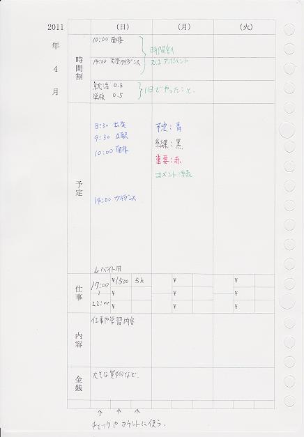 大学に入り、授業時間に隙間が出来たり、アルバイトをしたりなど、予定表をもつ必要が生じてきました。