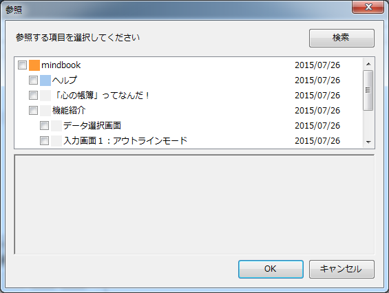 この画面は、新規作成時の参照画面と同じですが、検索ができます。